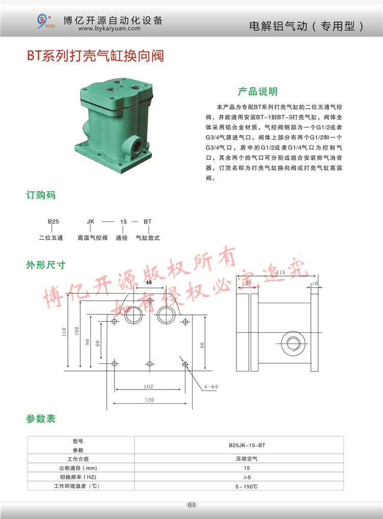 【產(chǎn)品材料】:閥體整體為鋁合金材質(zhì),內(nèi)部采用耐高溫密封件活塞