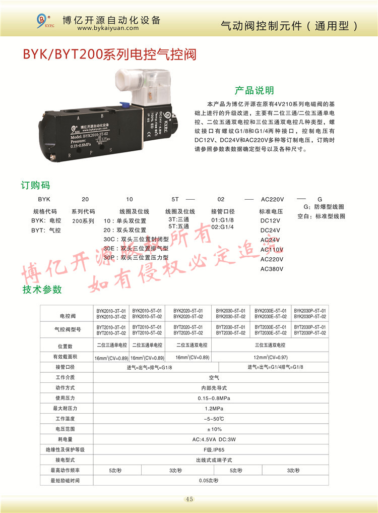 【產(chǎn)品名稱】:BYK/BYT200系列電控氣控閥