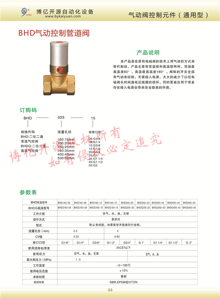 【產(chǎn)品名稱】:BHD氣動(dòng)控制液體閥