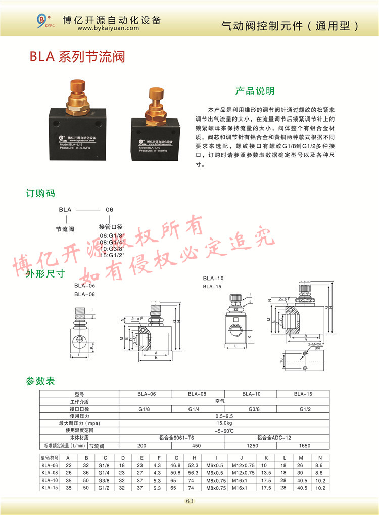 【產(chǎn)品名稱】:BLA系列單向節(jié)流閥