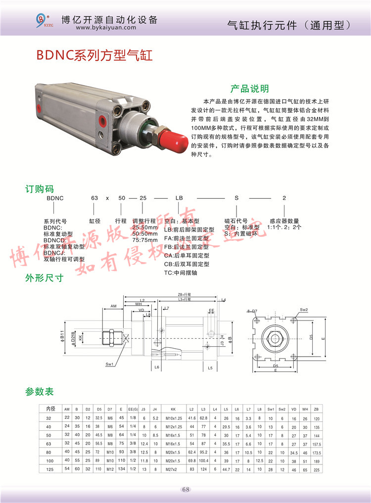 BDNC系列方型氣缸是博億開源自主研發(fā)的拉桿內藏式式方型標準氣缸,氣缸直徑32-100,氣缸行程根據客戶選擇貨定制,氣缸可安裝帶磁感應和各種安裝附件,更多的技術咨詢請聯系本公司技術部:0371-85612788
